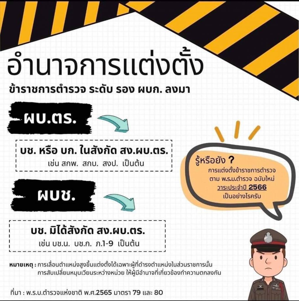 แนวทางการแต่งตั้งข้าราชการตำรวจ 5 กลุ่มสายงาน ตาม พ.ร.บ.ตำรวจแห่งชาติ พ.ศ.2565 15 กันยายน 2565 โดย admin / ข่าวประชาสัมพันธ์,ข่าวประชาสัมพันธ์ Facebook iconFacebookTwitter iconTwitterLINE iconLine