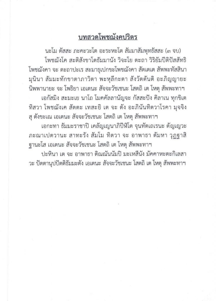 ทั้งนี้บทสวดโภชโพชฌังคปริตร มีดังนี้