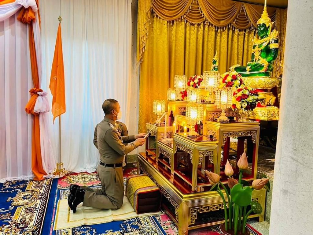วันเสาร์ที่ 17 ธ.ค.65 เวลา 16.30 น. ที่ ศาลาพระราชศรัทธา วัดปทุมวนาราม ราชวรวิหาร กรุงเทพฯ และทั้งนี้ได้สั่งการให้ข้าราชการตำรวจและลูกจ้าง ถวายพระพรด้วยการตั้งจิตอธิษฐาน สวดมนต์บูชาธรรมตามบทสวดโพชฌังคปริตร ในช่วงหลังจากเคารพธงชาติ หรือ เวลาอื่นตามความเหมาะสม ตั้งแต่วันที่ 16 ธ.ค. เป็นต้นไป และฝากประชาสัมพันธ์สำหรับพี่น้องข้าราชการตำรวจที่อยู่ในพื้นที่ต่างๆทั่วประเทศ สามารถเข้าร่วมพิธีการสวดมนต์ถวายเป็นพระราชกุศลได้ที่ วัดและสถานที่ที่จัดโดย ส่วนราชการต่างๆในพื้นที่ได้ทั่วประเทศ เพื่อเป็นการแสดงความจงรักภักดีและสำนึกในพระมหากรุณาธิคุณถวายพระพรให้พระองค์ทรงหายจากพระอาการประชวรในเร็ววัน