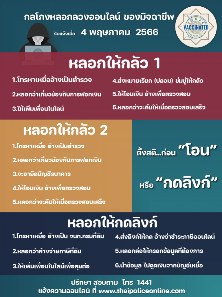ประชาสัมพันธ์ ” คาถา กันโดนหลอก” เตือนสติ หัวข้อ “ระวัง มิจฉาชีพหลอกถามข้อมูล” ” ถ้ามิจฉาชีพหลอกให้เรากดลิงก์ติดตั้งโปรแกรมควบคุมเครื่องได้แล้ว มันทำอะไรกับเราได้บ้าง”และ สรุปกลโกงของมิจฉาชีพ 8 พฤษภาคม 2566 โดย admin / ข่าวประชาสัมพันธ์,ข่าวประชาสัมพันธ์,เตือนภัยออนไลน์ Facebook iconFacebookTwitter iconTwitterLINE iconLine