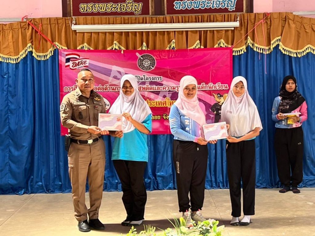 ในพิธีปิด และมอบประกาศนียบัตร แก่นักเรียนที่ผ่านการอบรมตามโครงการแดร์ ประจำภาคการเรียนที่ 2/2567 ณ หอประชุม โรงเรียนบ้านยางสะบ้า