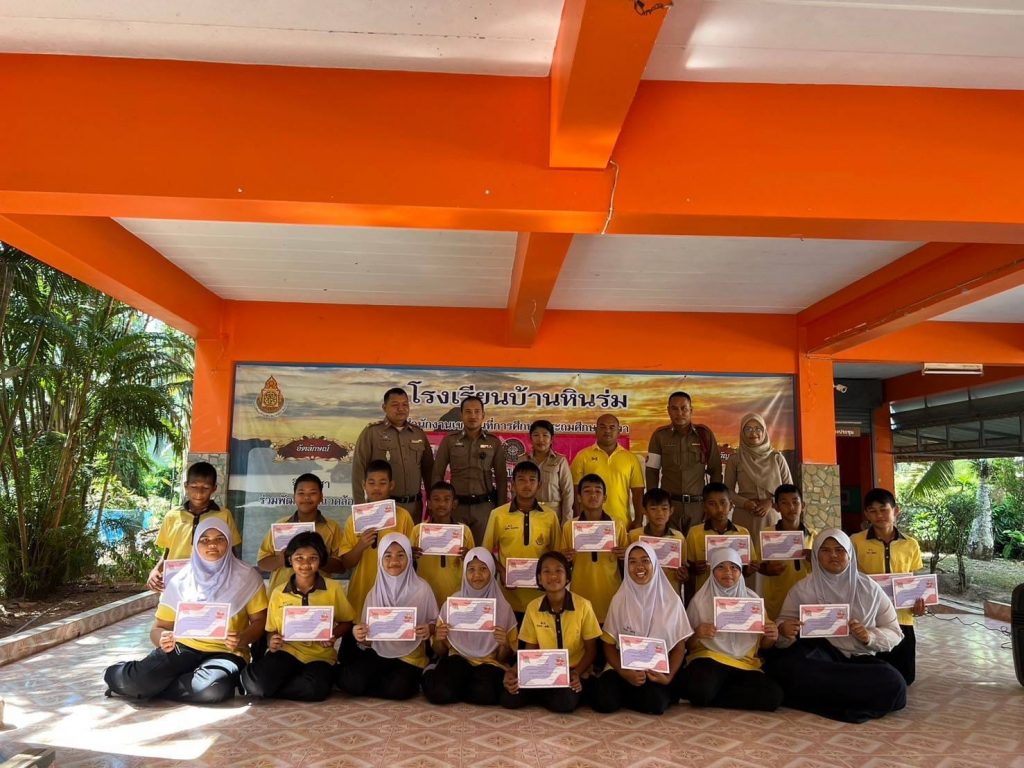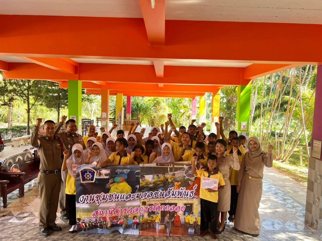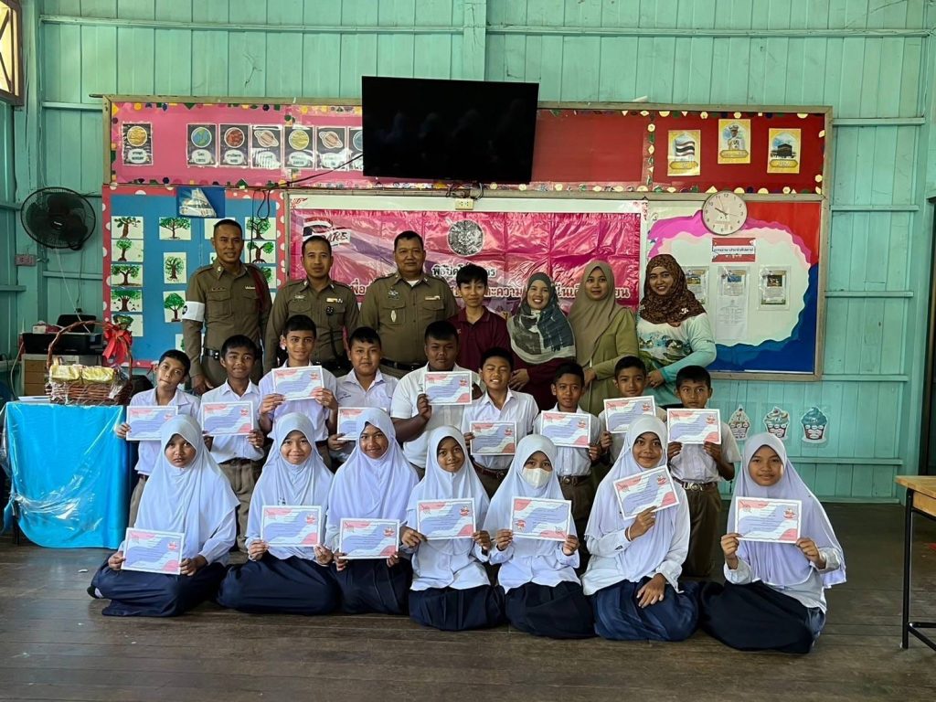 มอบหมายให้ร.ต.อ.ถาวร ทองขำ รองสวป.สภ.โคกกลอยพร้อมด้วย ด.ต.มณีพัฒิ หนูน้อย ผบ.หมู่(จร.)สภ.โคกกลอย ครูตำรวจแดร์ ชุดชมส.สภ.โคกกลอยในพิธีปิด และมอบประกาศนียบัตร แก่นักเรียนที่ผ่านการอบรมตามโครงการแดร์ ประจำภาคการเรียนที่ 2/2566 ณ โรงเรียน