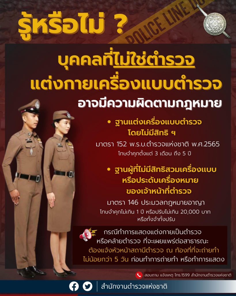 - อินโฟกราฟิก ประชาสัมพันธ์ “ไม่ใช่ตำรวจ แต่งกายเครื่องแบบตำรวจ อาจมีความผิดตามกฎหมาย”