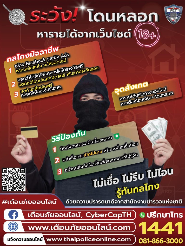 - อินโฟกราฟิก เตือนภัย “ระวัง โดนหลอกหารายได้จากเว็บไซต์ 18+”
