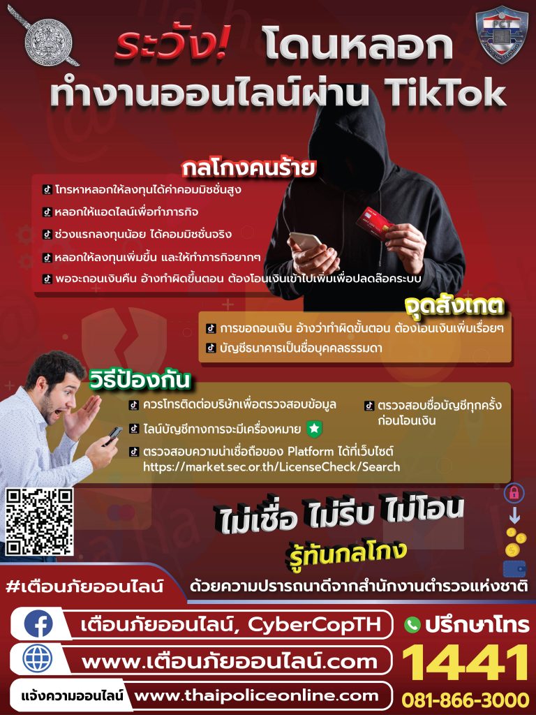 - อินโฟกราฟิก เตือนภัย “ระวัง โดนหลอกทำงานออนไลน์ผ่าน Tiktok”