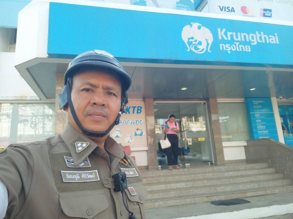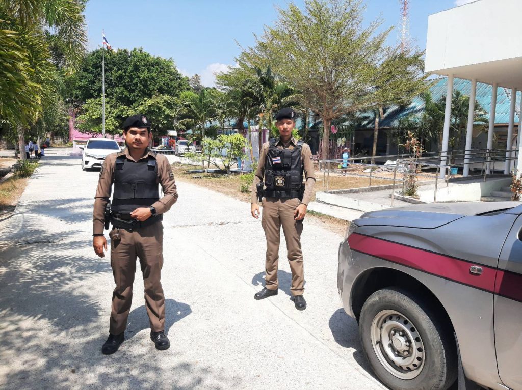 สำรวจดูพื้นที่ของโรงเรียนโดยรอบ ร้านทอง ปั้มน้ำมัน สถานีขนส่ง ตามมาตรการ การรักษาความปลอดภัยในสถานศึกษาตามนโยบายของรัฐบาล
