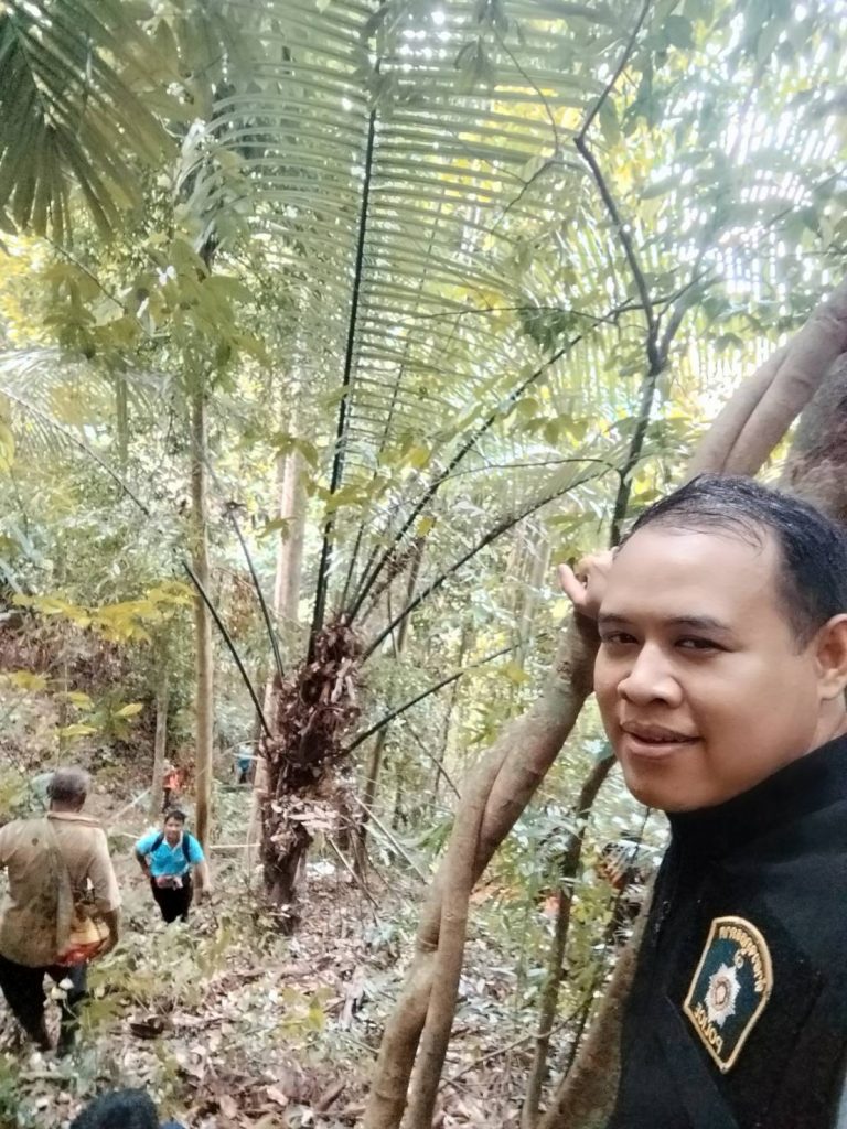 โคกกลอย30 พร้อมสายตรวจตำบลหล่อยูง ร่วมด้วยกำนัน ผู้ใหญ่บ้าน และชาวบ้าน ร่วมตรวจสอบรับแจ้ง พบศพ บุคคลแจ้งหายใว้ที่ สภ.โคกกลอย บนเขาบ้านบางปลา